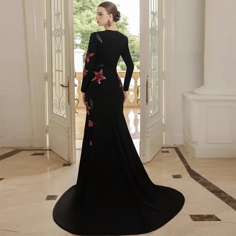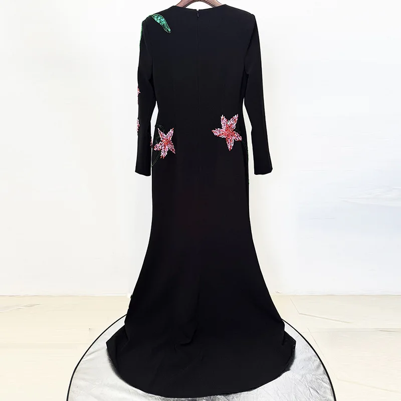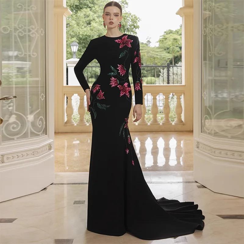 New Product: Fashionable Long Evening Gown with Heavy Beading and Rhinestone Black Women Long Dress